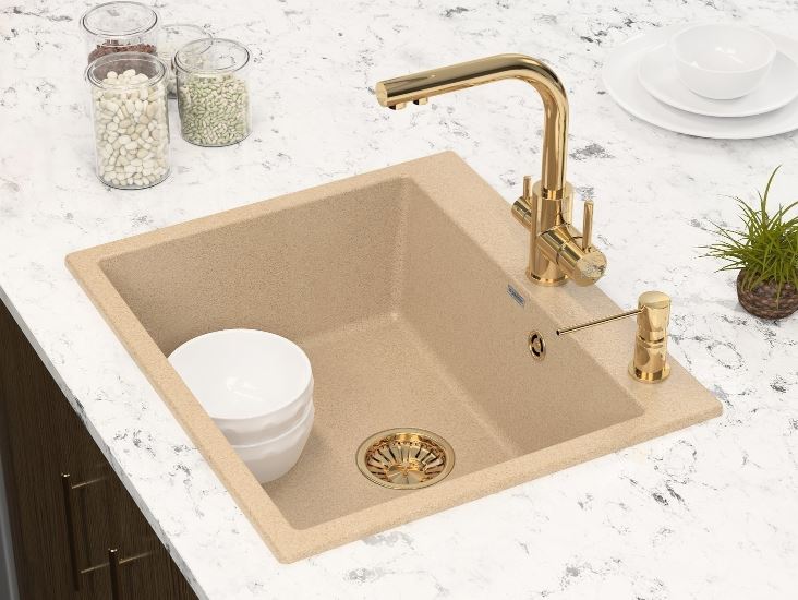 - Кухонные мойки, изготовленные из композитного материала – их преимуществом является устойчивость к различным механическим и химическим повреждениям, а также они отличаются экологичностью и пожаробезопасностью.